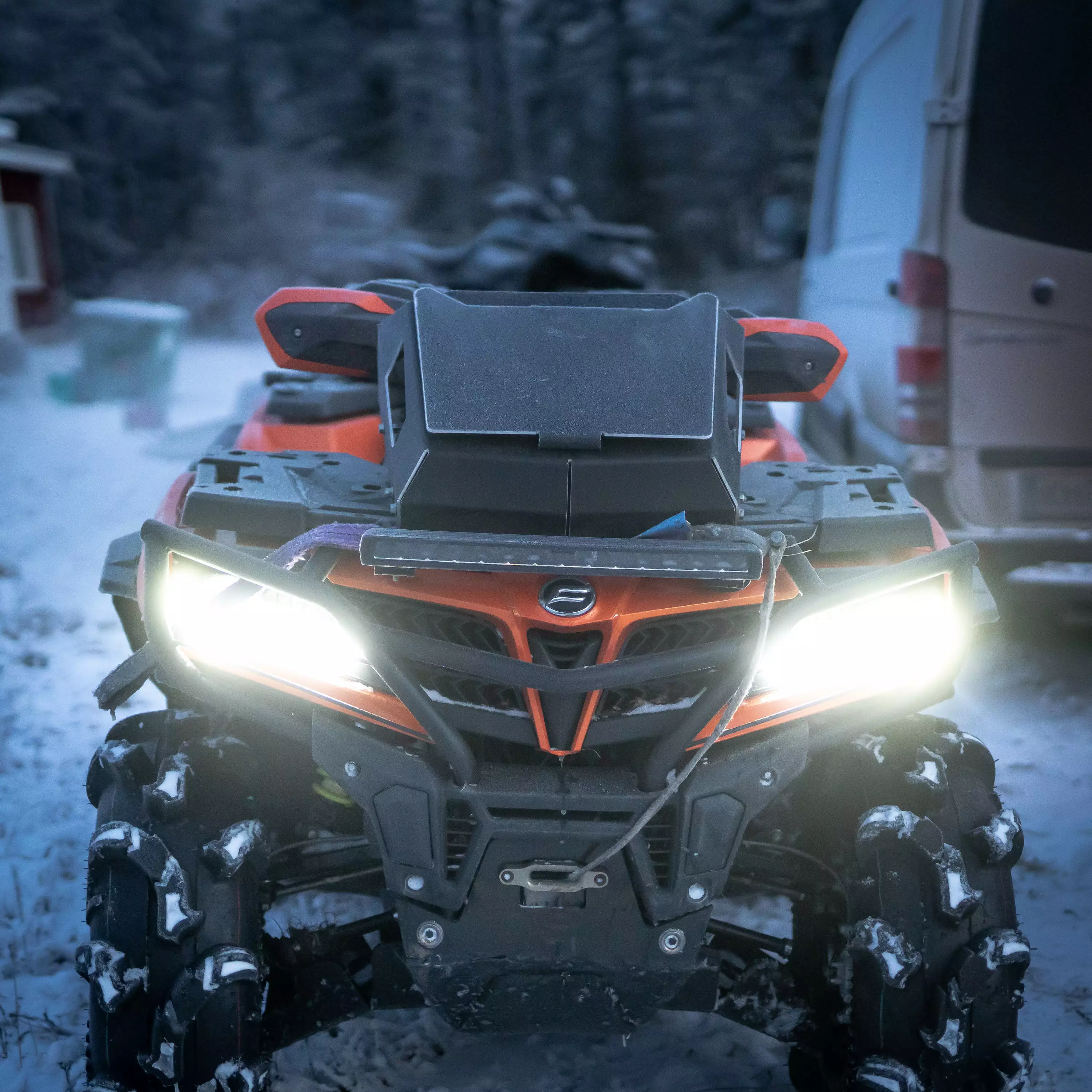 Mallikuvassa jäähdyttimen siirtosarja asennettu CF-Moto 1000cc ja pulverimaalattu mustaksi.