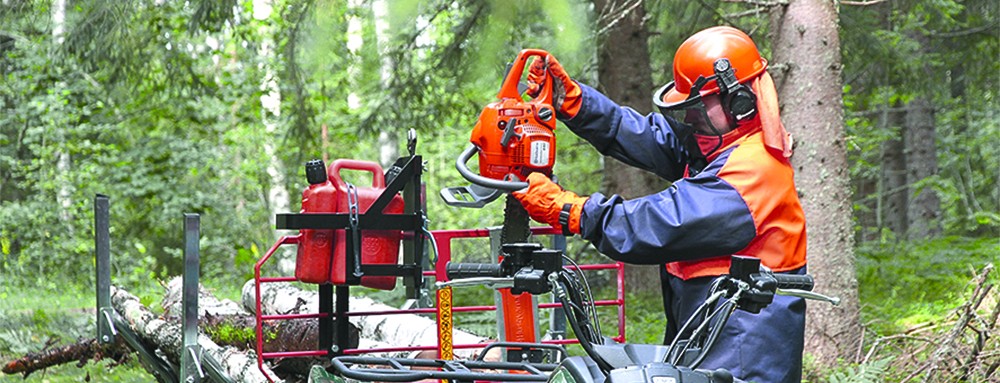Sahatelineessä kuljetat turvallisesti moottorisahaa.